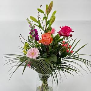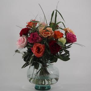 BOEKET GEMENGDE ROZE EN RODE ROOS LENTE 50 CM